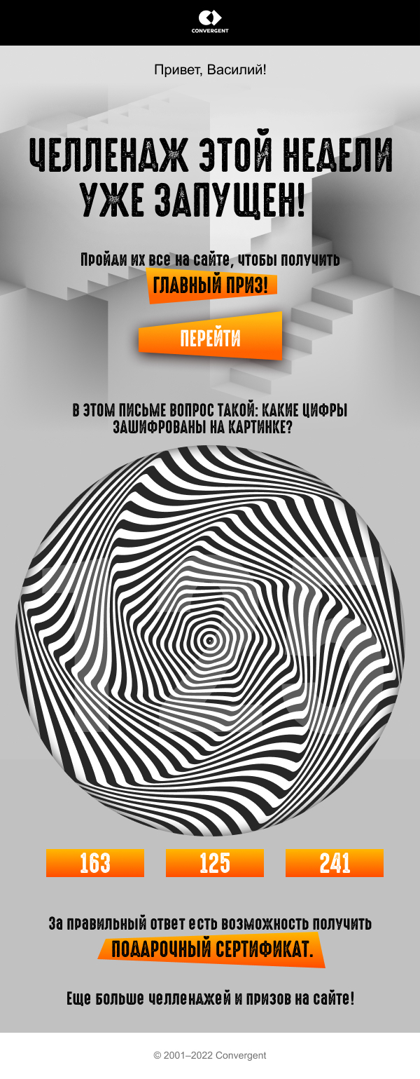 В письмах нельзя использовать прямые CTA, поскольку это противоречит закону, поэтому мы активно используем интерактивные элементы, анимацию и другие приёмы, чтобы увеличить CTR (Click-through rate)