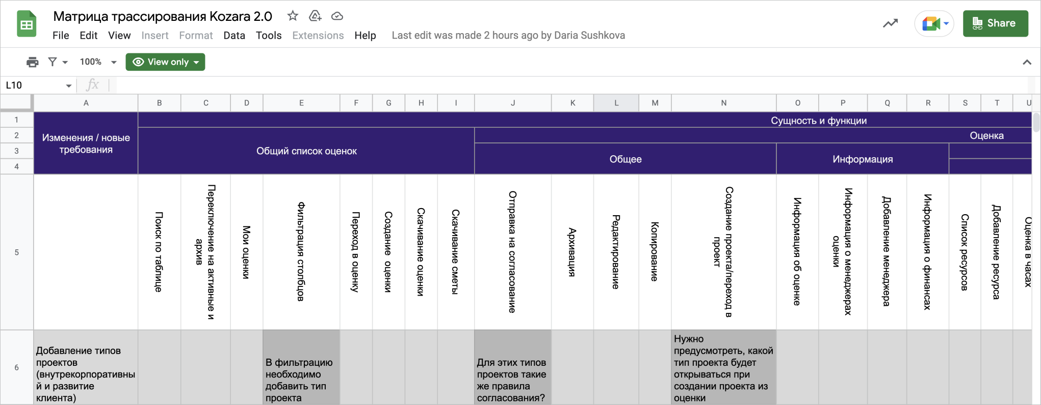 Кроме того, чтобы отслеживать, как функции влияют друг на друга и не допустить ошибок на этапе реализации, мы используем матрицу трассировки.