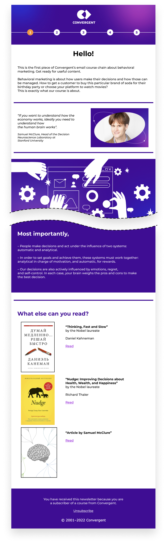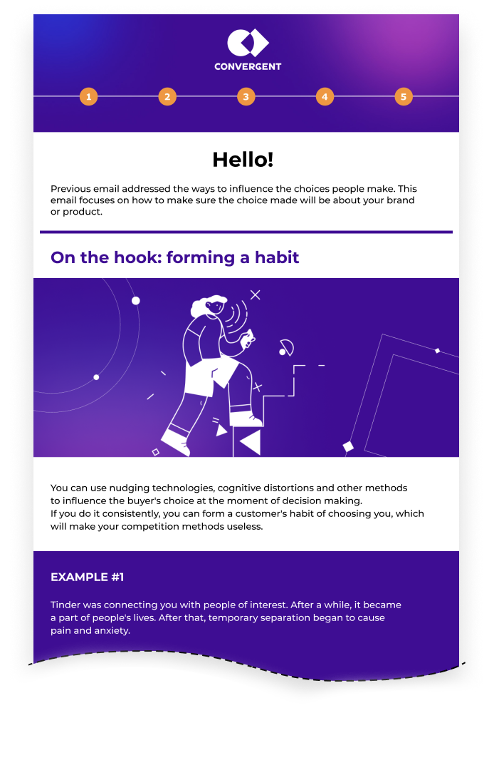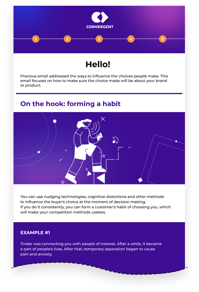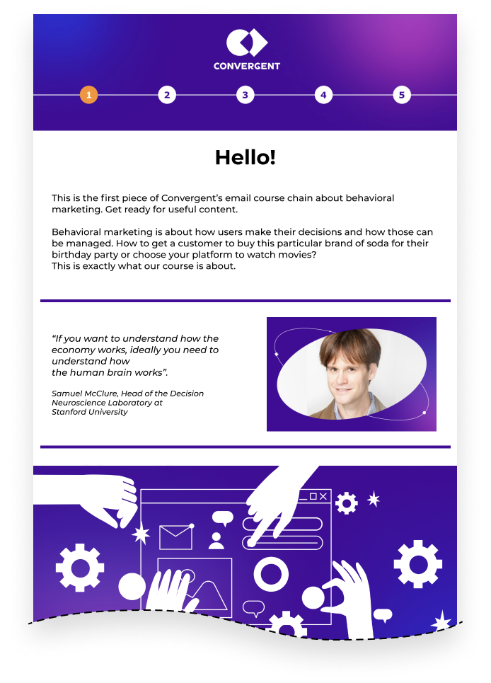 At Convergent, we do audience research, experiment with interaction techniques to have the most efficient ones at hand, and monitor KPIs to be efficient in accomplishing the business goals.