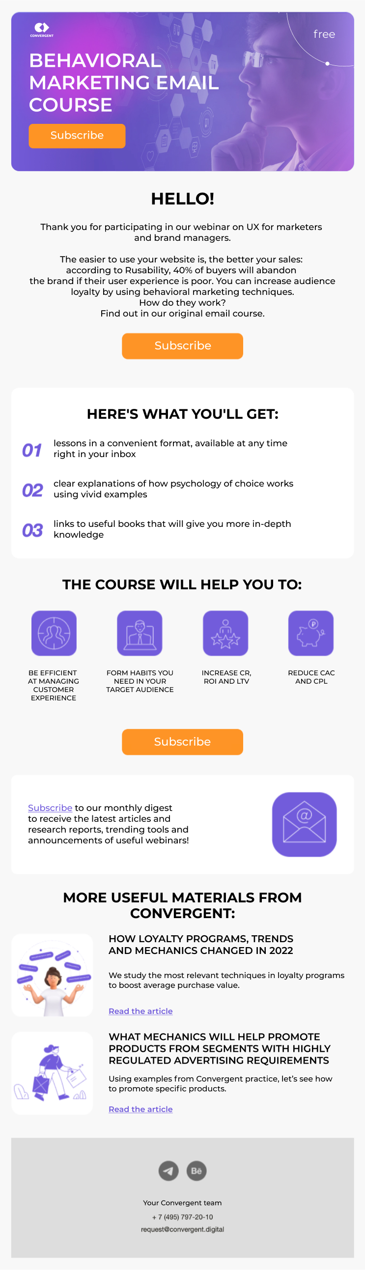 • Emails take into account the local market specifics: for example, in regions with harsh winters subscribers receive warm clothes overviews