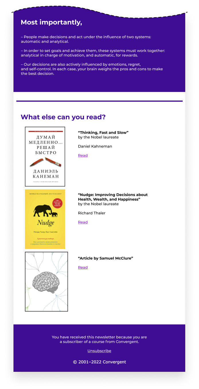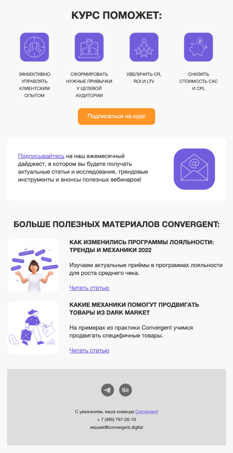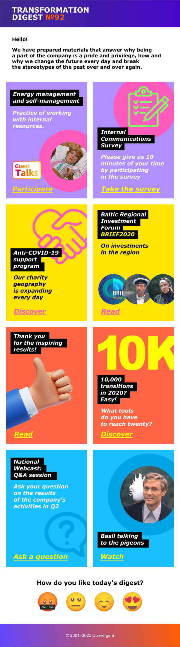 Not all companies take enough time to create powerful and clear internal newsletters. Convergent’s experience has shown that this area of internal marketing is especially important in large corporations. Sending interactive emails with company news or surveys on a regular basis demonstrate its openness to employees and positively develop corporate culture