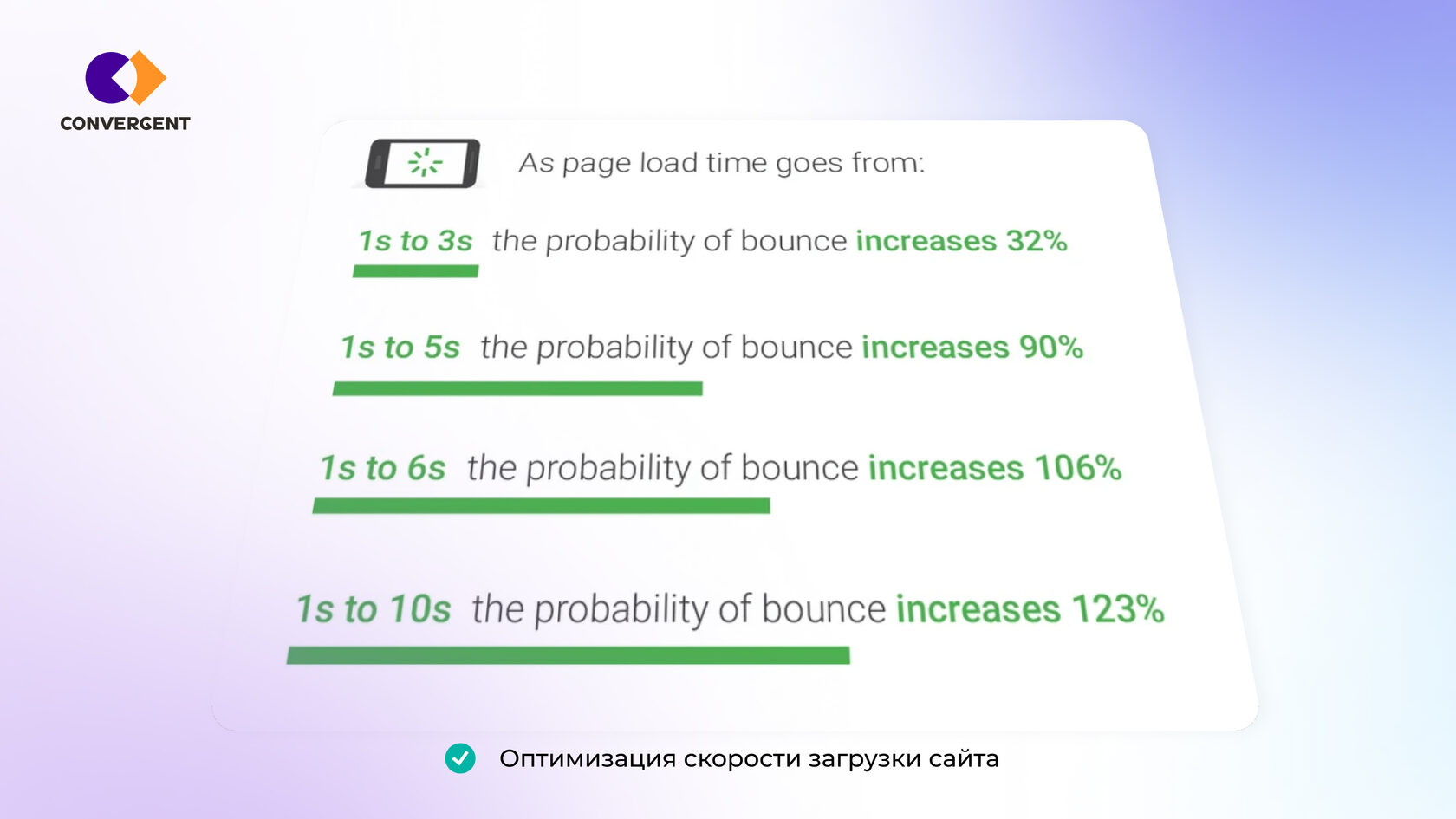 Пример: по статистике, чем быстрее загружается сайт, тем ниже показатели отказов и выше конверсия. То есть оптимизация скорости загрузки сайта может улучшить конверсию, будь то покупка, подписка на рассылку или заполнение формы.
